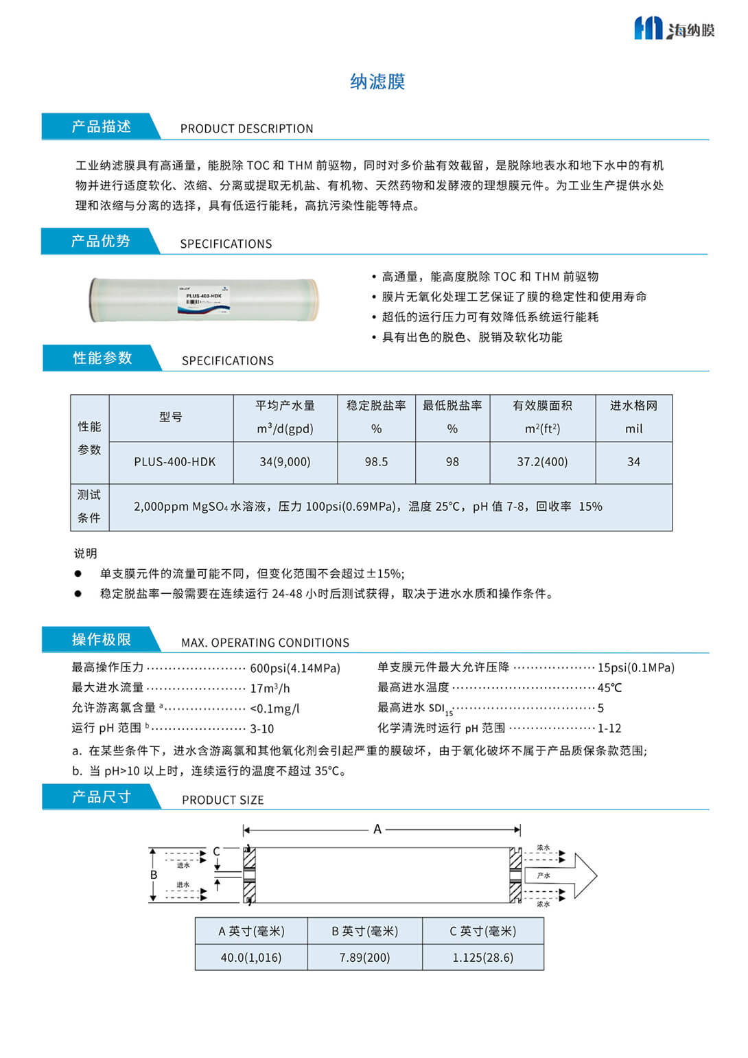 工業納濾膜 PLUS-400-HDK產品優勢: