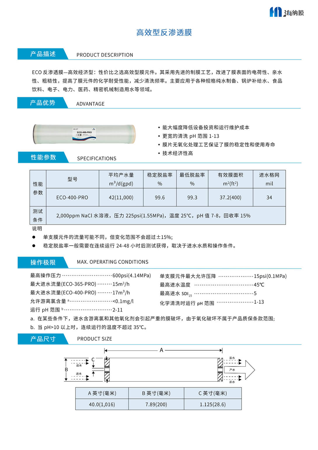 高效型反滲透膜 ECO-400-PRO產(chǎn)品優(yōu)勢: